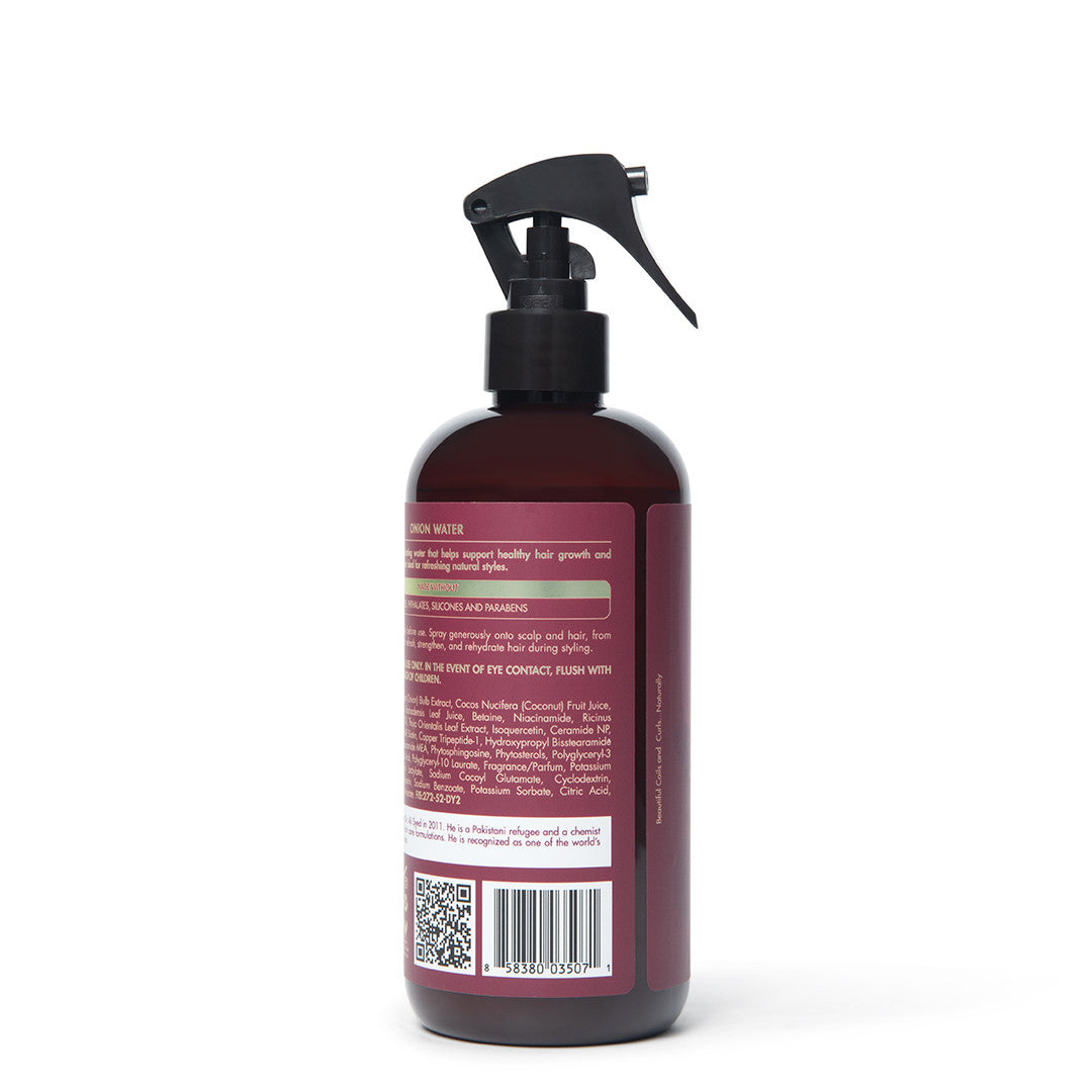 L'eau d'oignon est spécialement formulée pour renforcer et hydrater les cheveux tout en favorisant leur croissance et en réduisant leur chute. Elle apporte de la brillance, permet d'obtenir des cheveux plus volumineux et hydrate en profondeur les cheveux et le cuir chevelu. Elle est idéale pour rafraîchir les coiffures naturelles, les tresses et le cuir chevelu.