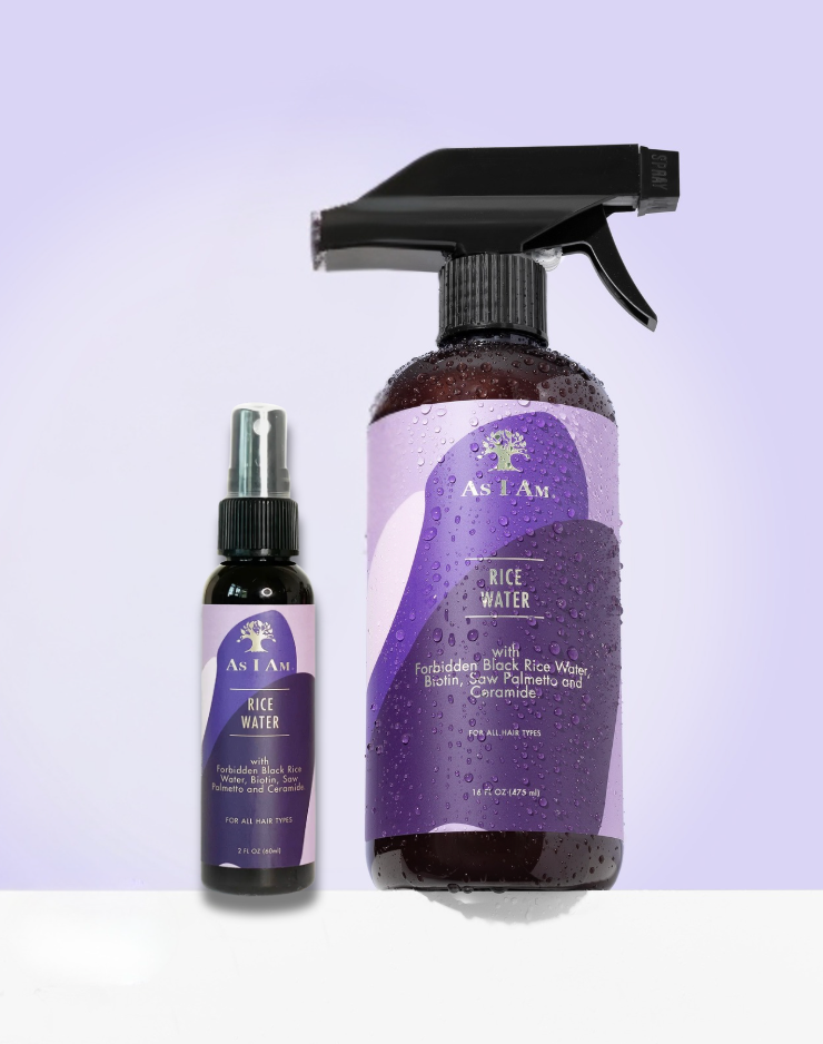 - Utilisez le spray d'eau de riz As I Am tous les jours pour rincer le shampooing, l'après-shampooing ou les produits coiffants, ou comme substitut de l'eau de douche.
